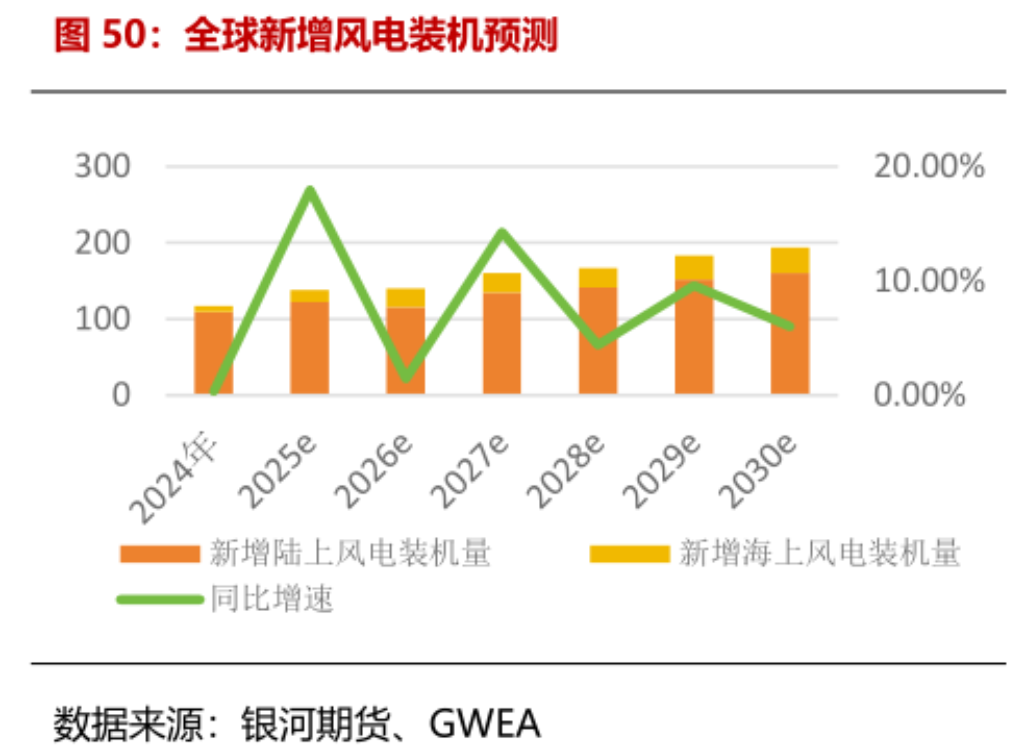 根据全球风能理事会发布的《2025年全球风能报告》,2024年全球风电新增装机容量达到创纪录的117GW,预计2025年进一步提升至138GW,且至2030年还将以8.8%的CAGR继续增长。